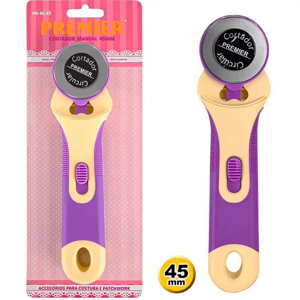 Cortador Circular de 45 mm é indicado para o corte preciso de tecidos, em conjunto com a Base para Corte e as Réguas para Patchwork.